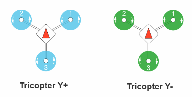 프로펠러가 3개 달린 멀티콥터로 보통 120도 각도로 나눠져 장착되어있다.